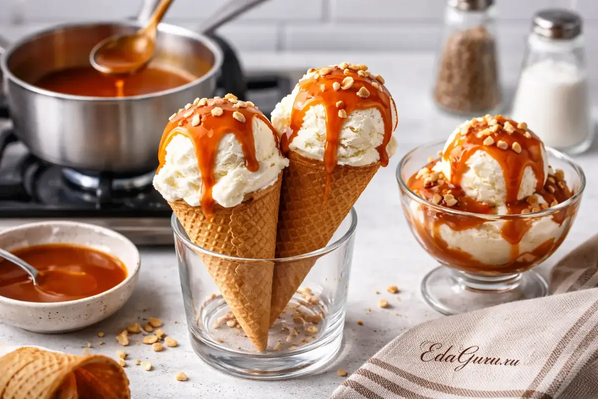 Мороженое с карамелью