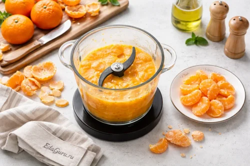Для желе лучше брать сладкие мандарины без выраженной горечи и особенно тщательно очищать дольки от белых пленок, иначе они дадут грубую текстуру и могут горчить в готовом десерте.