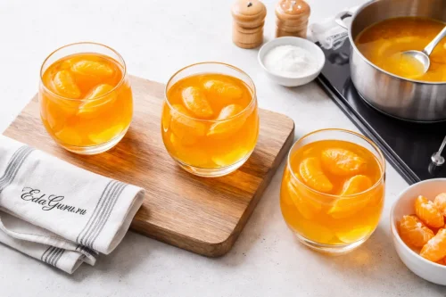 Мандариновое желе — легкий десерт, особенно уместный после сытных праздничных застолий. Для него подходят спелые плоды с ярким ароматом: мандарины дают сладко-кислый вкус и заметную цитрусовую свежесть. Основа такого блюда обычно строится на соке или фруктовом пюре с добавлением желирующего компонента, поэтому десерт получается нежным и освежающим. Мандарины давно стали частью зимнего стола в России и прочно ассоциируются с новогодними праздниками, поэтому желе с ними воспринимается как сезонное домашнее угощение.