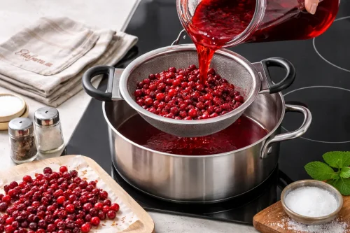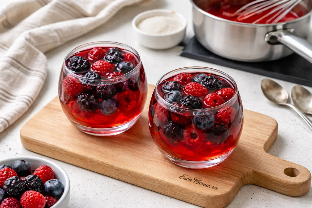 Если компот очень сладкий, лучше слегка разбавить его водой до добавления желатина, иначе вкус желе получится приторным, а ягодный аромат — менее выразительным.