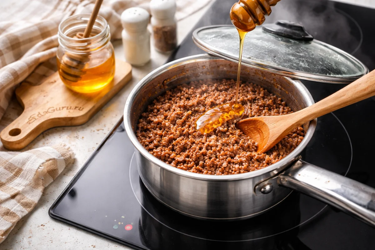 Мед добавляйте только в уже почти готовую кашу и не кипятите долго, иначе аромат станет слабее.