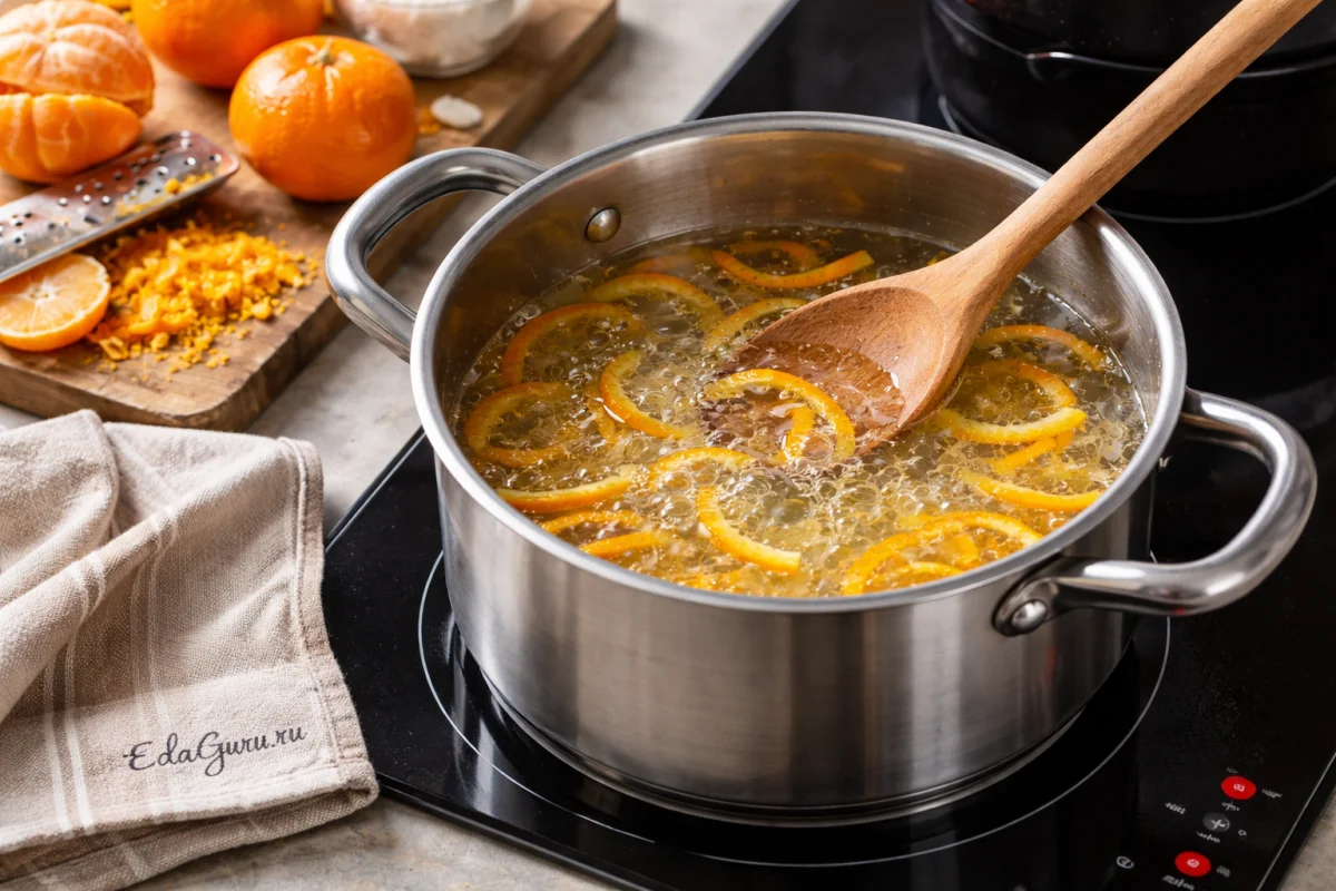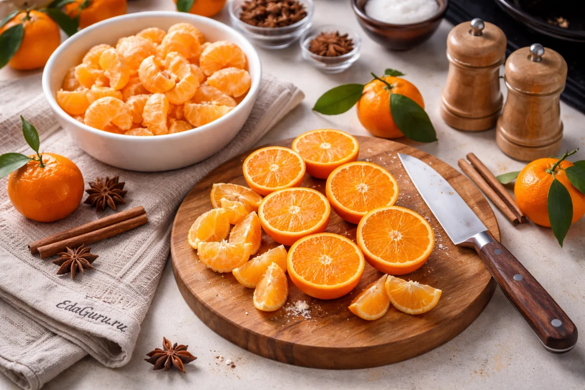 Если под рукой нет мандаринов с ярким ароматом, часть можно заменить апельсином: вкус будет чуть менее нежным, но более насыщенным и устойчивым после настаивания.