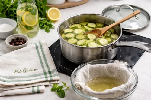 Компот из кабачков — простой домашний напиток, который давно известен в сезонной кухне. Благодаря нейтральному вкусу кабачок хорошо впитывает аромат сахара, лимона и других фруктовых добавок, поэтому компот получается легким и освежающим. Особенно часто такие рецепты появлялись в годы богатого дачного урожая, когда хозяйки искали способы использовать овощи не только в рагу, оладьях и икре. По текстуре и способности принимать вкус сиропа кабачок нередко сравнивают с ананасом, поэтому в домашних заготовках его иногда сочетают с цитрусовыми. Такой компот ценят за доступность ингредиентов, мягкий вкус и простоту приготовления: активное время минимально, а основная задача — дать напитку настояться, чтобы вкус стал более выразительным.