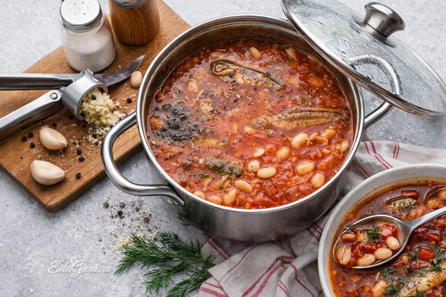 Выбирайте качественную кильку в томате. Рыбки должны быть целыми и не разваливаться. В конце приготовления добавьте зелень и чеснок для усиления вкуса. Борщ с килькой и фасолью вкуснее на следующий день, его можно есть в холодном виде. Несмотря на распространенное мнение о сложности приготовления украинского борща, наш рецепт прост и подходит даже для начинающих кулинаров.