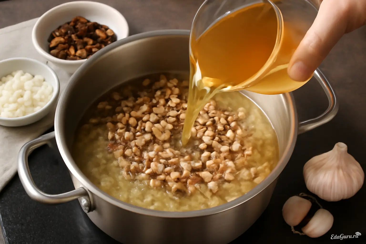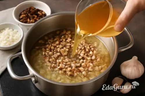ШАГ 6. СМЕШИВАЕМ БУЛЬОН И ГРИБЫ