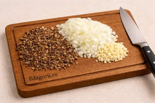 ШАГ 5. ОБЖАРКА ЛУКА И ЧЕСНОКА