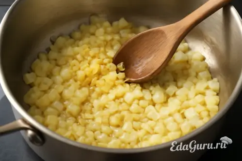 Растопите сливочное масло в кастрюле и обжаривайте на среднем огне лук до тех пор, пока он не станет мягким, это займет около 3-5 минут. Затем добавьте чеснок и продолжайте пассеровать еще одну минуту. Важно, чтобы ничего не подгорело.