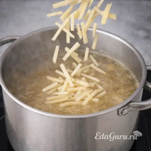 ШАГ 4. ДОБАВЛЕНИЕ КАРТОФЕЛЯ В СУП