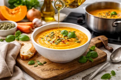 Суп-крем из тыквы — блюдо, которое действительно готовят во многих странах мира. Тыква как продукт известна человечеству с древности: ее начали выращивать в Америке задолго до появления европейцев, а после XVI века она широко распространилась в Европе и Азии. Благодаря мягкой сладости и нежной текстуре тыква особенно хорошо подходит именно для супов-пюре. Кремовая консистенция достигается за счет варки и последующего измельчения мякоти, поэтому блюдо может быть сытным даже без добавления молочных продуктов. В постной версии обычно используют овощной бульон, лук, чеснок и специи, а для более нежного вкуса нередко добавляют сливки. Тыквенный суп ценят не только за яркий цвет и аромат, но и за универсальность: он одинаково уместен и в домашнем повседневном меню, и в сезонном осеннем обеде.