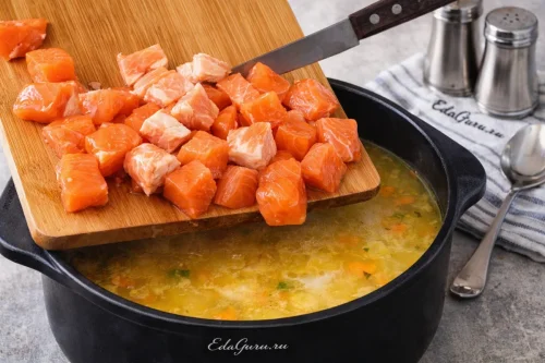 Положите ингредиенты в суп и готовьте его четыре минуты.
