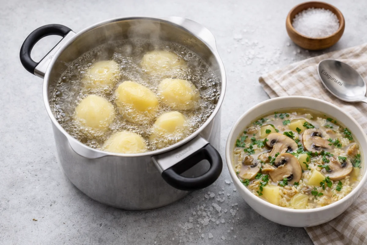 Грибной суп с рисом и картофелем — это ароматное и сытное первое блюдо, которое отлично подходит для домашнего обеда. Сочетание грибов, риса и картофеля делает его насыщенным. Такие супы давно занимают важное место в домашней кухне, особенно в сезон свежих грибов, когда хочется приготовить простое и аппетитное блюдо. Суп с грибами ценят за доступные ингредиенты, легкость приготовления и приятный насыщенный аромат.