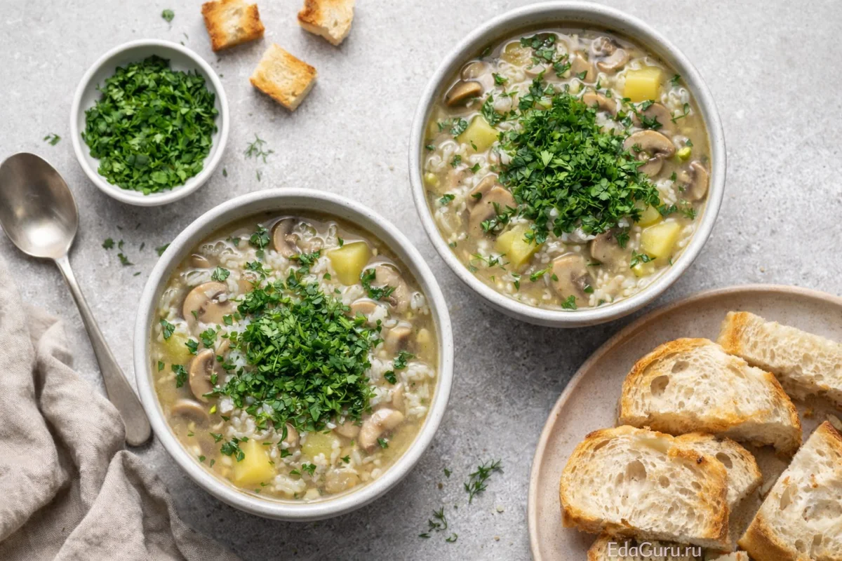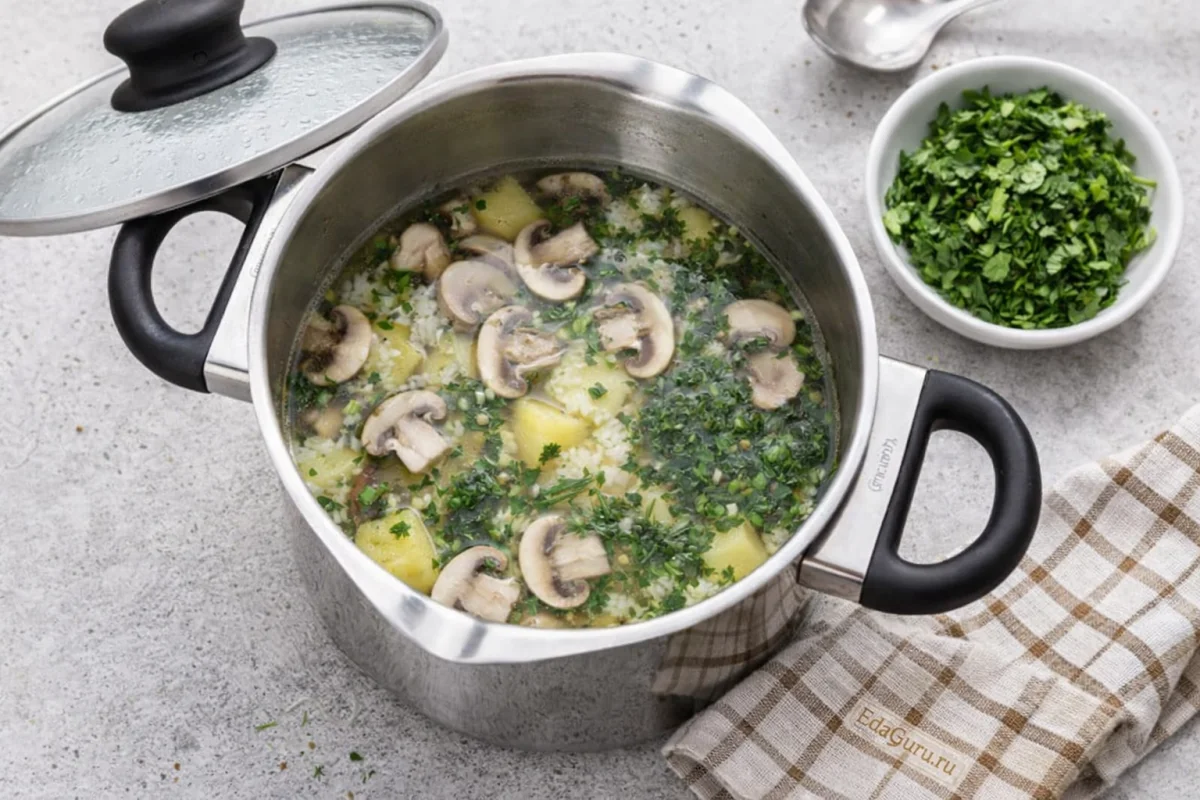 Грибной суп с картофелем и рисом