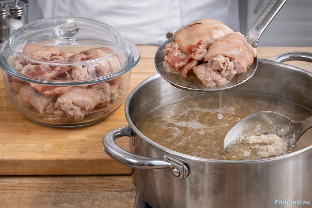 Шаг 2. Подготовка бульона и мяса