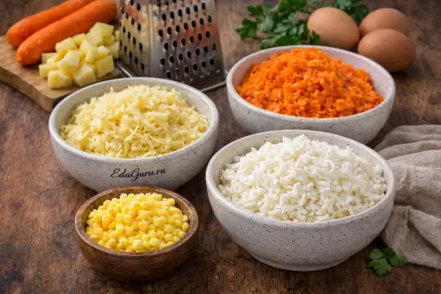 Для «Мимозы» со шпротами овощи лучше запечь с вечера. Картофель и морковь помойте щеткой, затем хорошо вытрите салфеткой. После этого разложите овощи по отдельности на кусках фольги, слегка посолите и заверните. Важно убрать лишнюю влагу: так овощи запекутся, а не будут париться.
