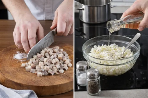 Шаг 6. Нарезка лука и сельди