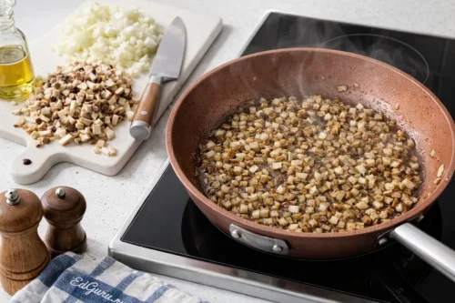 Шаг 2. Обжарка лука с грибами