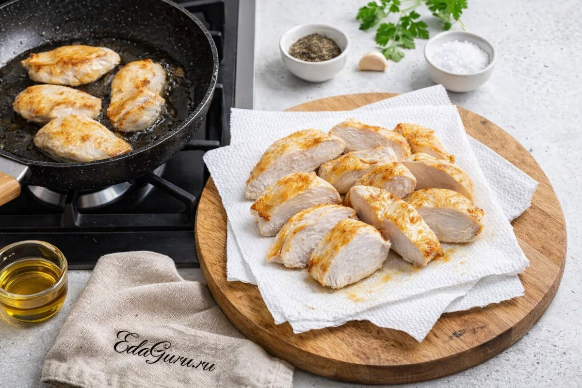 Шаг 1. Обжарка куриного филе