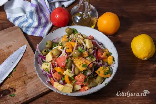 Вот когда салат постоит, тогда его можно раскладывать по тарелкам и подавать на стол.