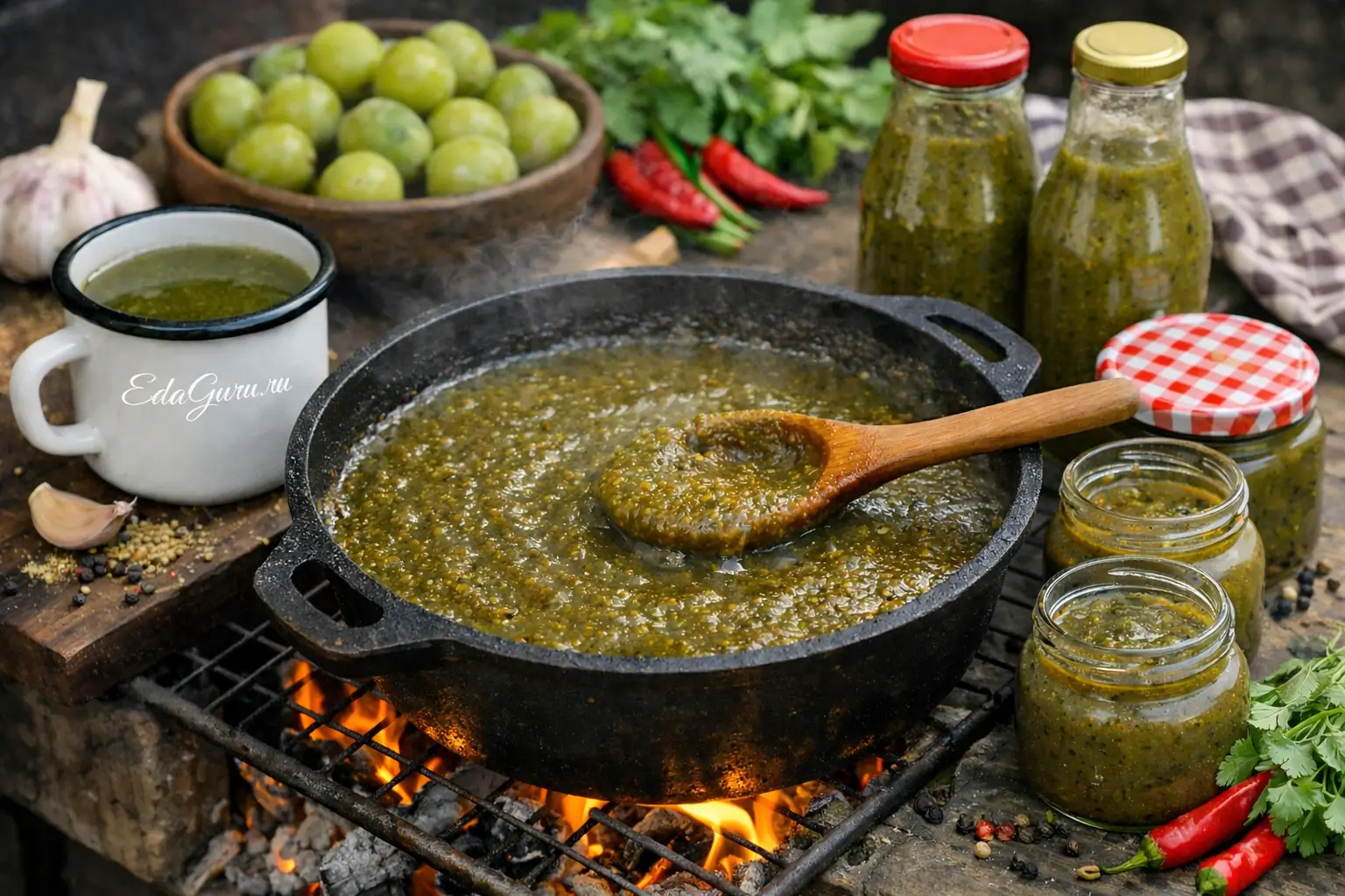 Для ткемали важен баланс кислоты и густоты: отвар от слив подливайте буквально по ложке, потому что после остывания соус станет плотнее, а чеснок, соль и острый перец лучше окончательно выправлять уже в конце варки.