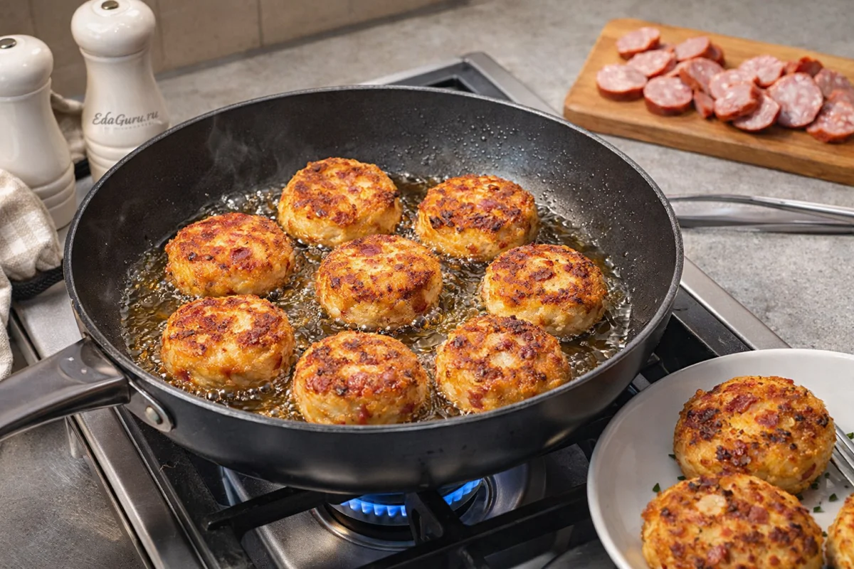Картофельные котлеты с колбасой