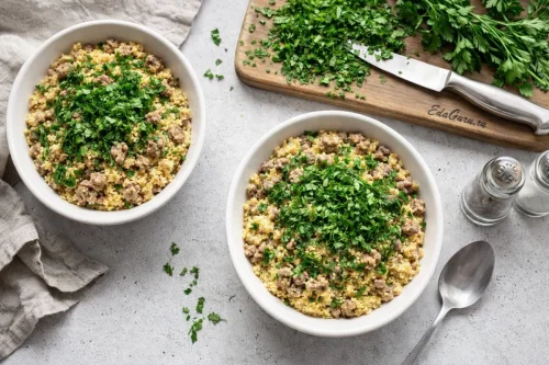 Пшенная каша с говяжим фаршем — сытное блюдо из доступных продуктов, основанное на сочетании пшена и мяса. Пшено получают из проса — одной из древнейших зерновых культур, известных человеку. На Руси пшенные каши были повседневной едой благодаря простоте приготовления и хорошей питательности. Мясной фарш в домашней кухне стали особенно активно использовать позже, когда распространились бытовые мясорубки и упростилась переработка мяса. Для такого блюда пшено обычно промывают, чтобы убрать естественную горечь, затем варят до мягкости и соединяют с обжаренным фаршем, луком и специями. Каша получается рассыпчатой или более вязкой — в зависимости от количества жидкости. Это практичный вариант обеда или ужина: крупа дает сложные углеводы, а мясо добавляет белок и делает вкус более насыщенным.
