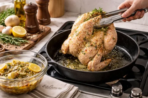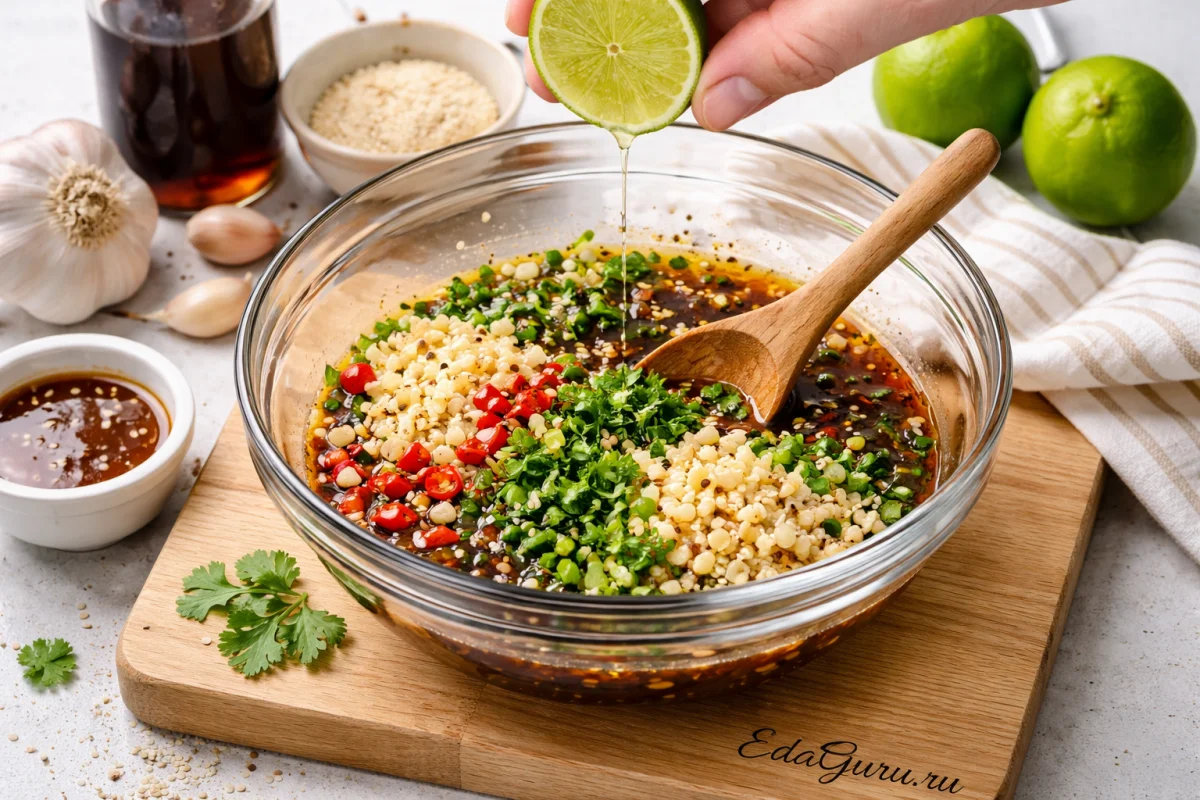Терияки-маринад — основа одного из самых известных вкусов японской кухни. Название связано со способом приготовления: «тери» означает блеск, а «яки» — жарение или запекание. Классическая база терияки включает соевый соус, сахар и сладкое рисовое вино мирин, иногда с добавлением саке. При нагревании сахар карамелизуется, а соус образует характерную глянцевую глазурь на мясе, рыбе или овощах. В домашней версии маринад часто дополняют чесноком, имбирём или мёдом, но основа остаётся узнаваемой: баланс солёного, сладкого и лёгкой насыщенности умами. Терияки особенно хорошо подходит для курицы, лосося, свинины и блюд, которые готовят на сковороде или гриле.