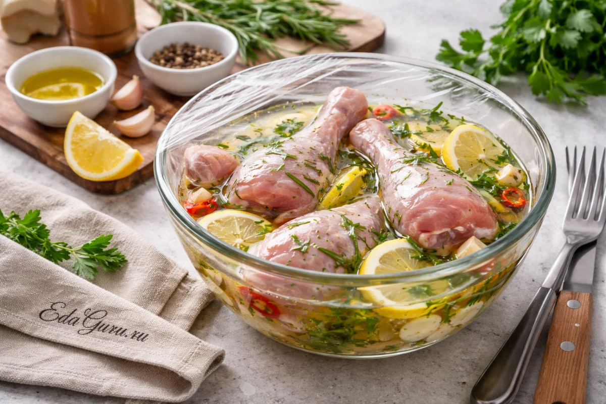 Рыбу или курицу опустите в маринад, уберите в прохладное место и оставьте на 30–60 минут.