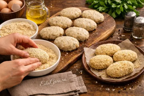 Шаг 4. Сформуйте и запанируйте котлеты