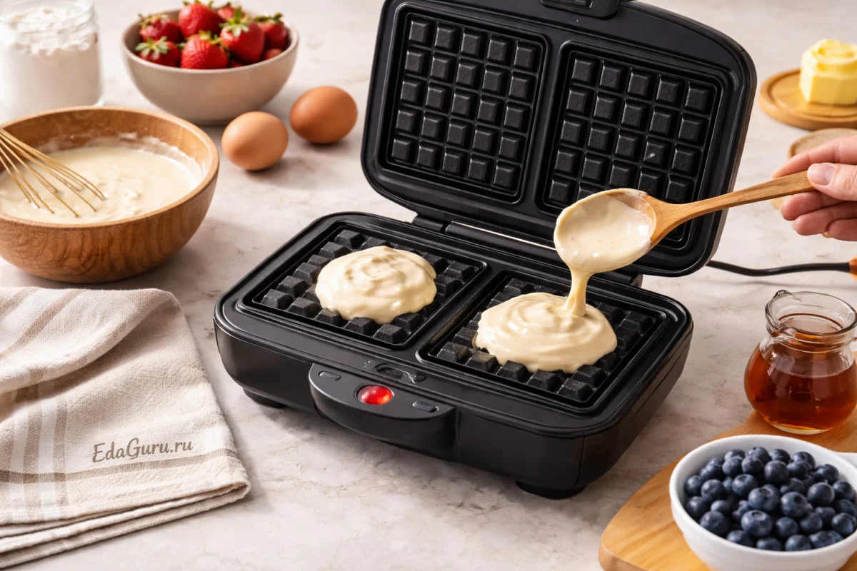 Шаг 4. Выпечка вафель 1 этап