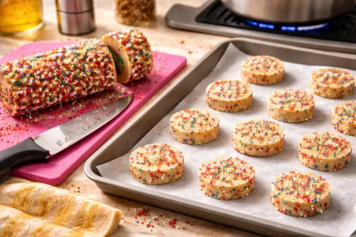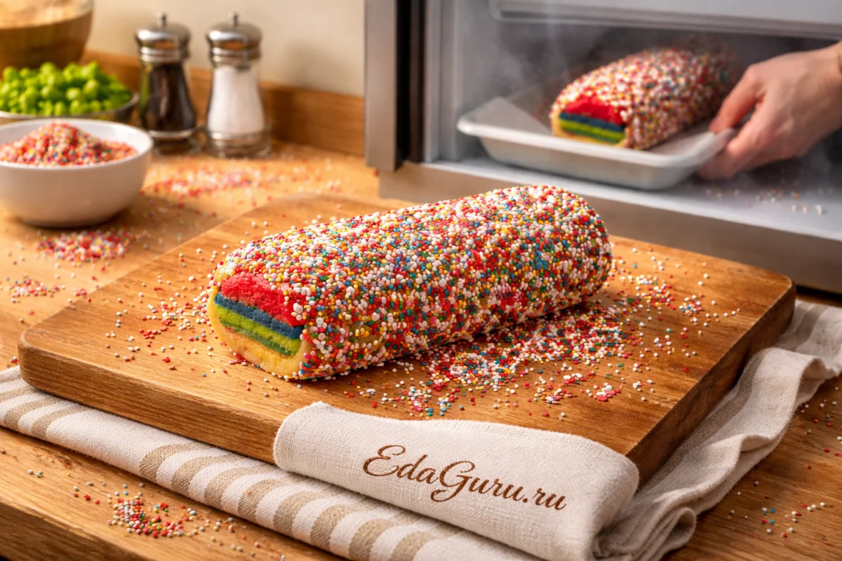 Покройте заготовки посыпкой, затем поставьте их в морозилку на 40 минут.