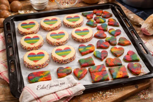 Печенье с сердечками — песочное печенье, где рисунок на срезе формируют из двух видов теста. Такой прием относится к декоративной выпечке, популярной в домашней кулинарии благодаря сочетанию простых продуктов и выразительной подачи. Основа обычно остается классической: сливочное масло, сахар, мука и, при необходимости, какао для контрастного цвета. Главный секрет аккуратного узора — хорошо охлажденное тесто: это действительно помогает сохранить форму при нарезке и выпечке. Печенье в виде сердца особенно часто готовят ко Дню святого Валентина, семейным праздникам и детским чаепитиям. Несмотря на нарядный вид, технология строится не на сложных ингредиентах, а на точности, терпении и последовательном охлаждении заготовок.
