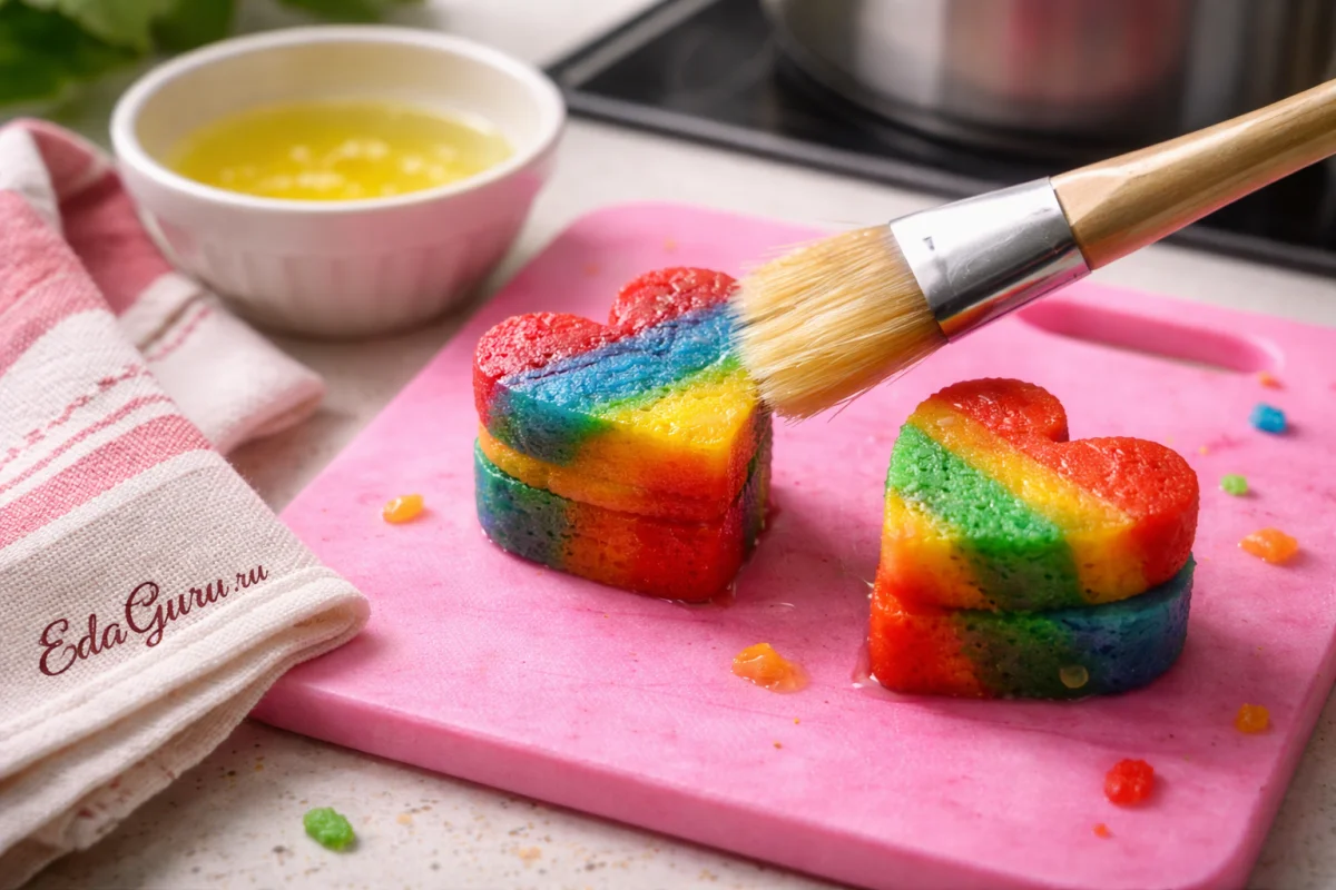 Красители лучше использовать гелевые, а вместо белка для склеивания можно взять каплю воды или молока, если нужен более нейтральный вкус и тонкая «прослойка» без лишнего блеска.