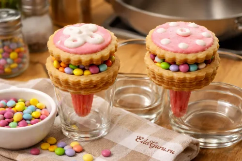 Чтобы детали держали форму и не расплывались, работайте с хорошо охлажденным тестом: если при вырубке оно стало мягким, верните заготовки в холод еще на 10–15 минут. Белковую глазурь лучше доводить до густой, медленно стекающей консистенции — слишком жидкая будет стекать с боков и дольше сохнуть; для более стабильного айсинга можно добавить несколько капель лимонного сока. Если нужен более быстрый и предсказуемый результат при сборке, белковую глазурь можно заменить готовым айсингом: он быстрее схватывается и удобнее для склеивания мелких деталей.