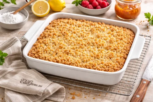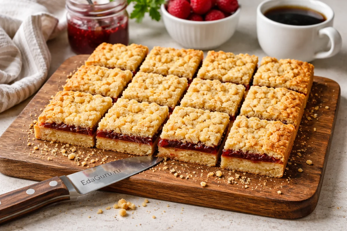 «Мамино печенье» — домашняя версия хорошо знакомого многим тертого пирога. Его делают из песочного теста с вареньем, а сверху посыпают крошкой — такой прием в кулинарии связан со штрейзелем. Штрейзель известен в центральноевропейской кухне: это смесь муки, сахара и масла, которую используют для посыпки выпечки. В домашней традиции такой десерт ценят за простоту: тесто не нужно долго формовать, достаточно распределить основу, добавить варенье и натереть или раскрошить сверху часть теста. После выпечки пласт нарезают на квадраты или полоски. Именно поэтому у рецепта так много «семейных» названий: для одних это тертое печенье, для других — пирог из детства, для третьих — мамин фирменный сладкий перекус к чаю.
