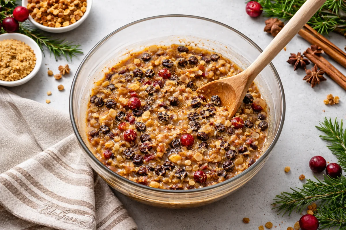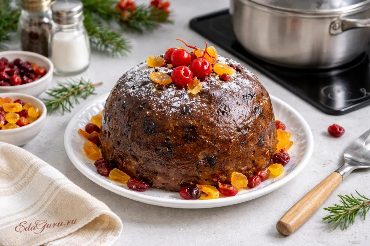 Традиционный рождественский пудинг — классический британский рождественский десерт с многовековой историей. Его готовят из сухофруктов, цукатов, пряностей, жира, муки или сухарей, а затем долго варят на пару. Важная особенность рецепта — выдержка: пудинг действительно часто готовят заранее, чтобы вкус стал более глубоким и гармоничным. В Великобритании существует обычай смешивать тесто всей семьёй, загадывая желание. Исторически рождественский пудинг связан с более ранними средневековыми блюдами из сухофруктов и пряностей, а современный вариант окончательно закрепился в XIX веке. Перед подачей его нередко прогревают и подают с соусом, сливками или бренди-маслом.