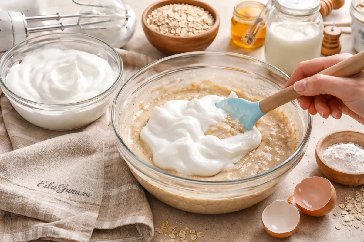 Если нет овсяной муки, смолите обычный «Геркулес» в блендере — текстура получится чуть грубее; часть молока можно заменить кефиром для более выраженной кислинки и более нежного мякиша.
