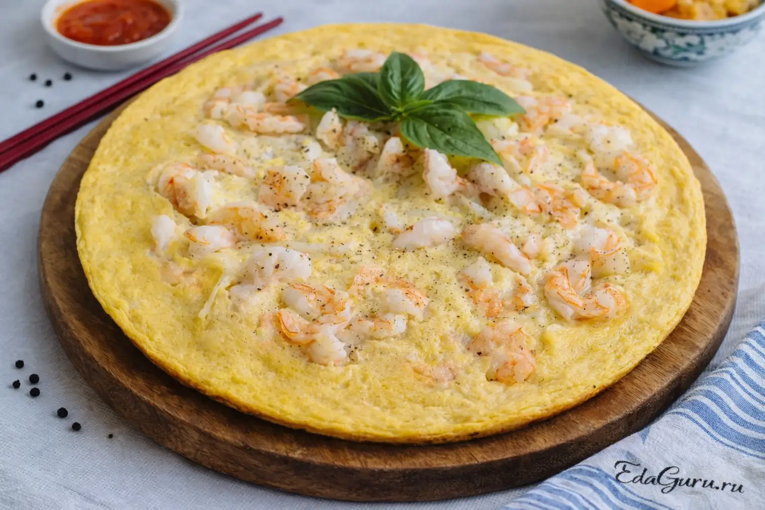 Пицца с морепродуктами по-корейски по структуре действительно ближе не к классической итальянской пицце, а к плотному омлету или яичному блину с начинкой. В корейской кухне есть блюда, где основу составляют яйца, мука и морепродукты, а подача идет целым круглым пластом, который затем разрезают на куски. По этой причине такое блюдо часто называют «пиццей» лишь условно — скорее из-за формы и способа подачи. Для начинки обычно используют креветки, кальмаров или другие морепродукты, а вкус дополняют перцем, зеленью и соусами. Подобные рецепты ценят за сытность, нежную текстуру и быстрое приготовление. Это хороший пример того, как европейское название закрепилось за блюдом с совсем другой кулинарной основой.