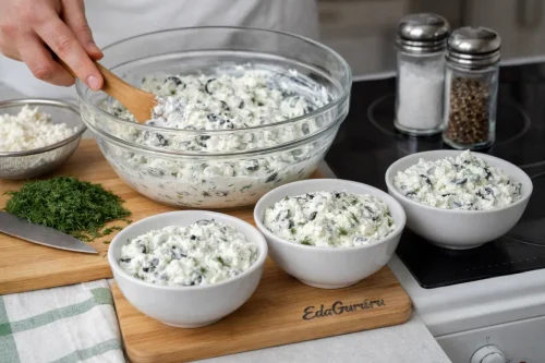 Творожный террин с перцами — холодная закуска, в которой сочетаются мягкий творог или свежий сыр и сладкий болгарский перец. Название «террин» пришло из французской кухни: так называют и керамическую форму, и блюда, которые в ней готовят или охлаждают слоями. В современной домашней кулинарии террины часто делают без запекания, особенно из творожных и овощных масс. Сладкий перец попал в европейскую кухню после открытия Америки, а позже стал важной частью средиземноморских и восточноевропейских блюд. Творожные закуски, наоборот, имеют давнюю местную традицию в славянской кухне. Поэтому такой террин можно считать удачным сочетанием европейской техники подачи и привычных продуктов.